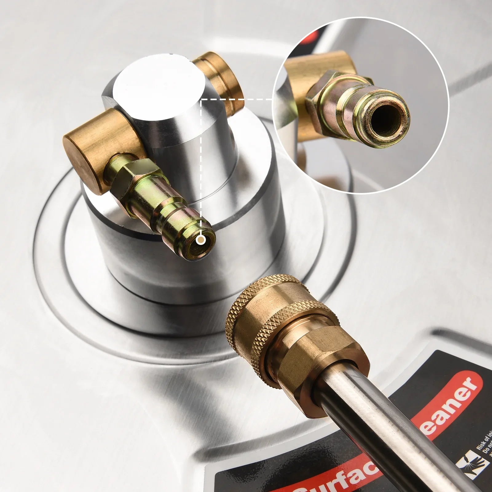 - Quick Connection System: The Surface Cleaner features a 1/4" quick plug for easy connection to compatible pressure washer lances and fittings.
