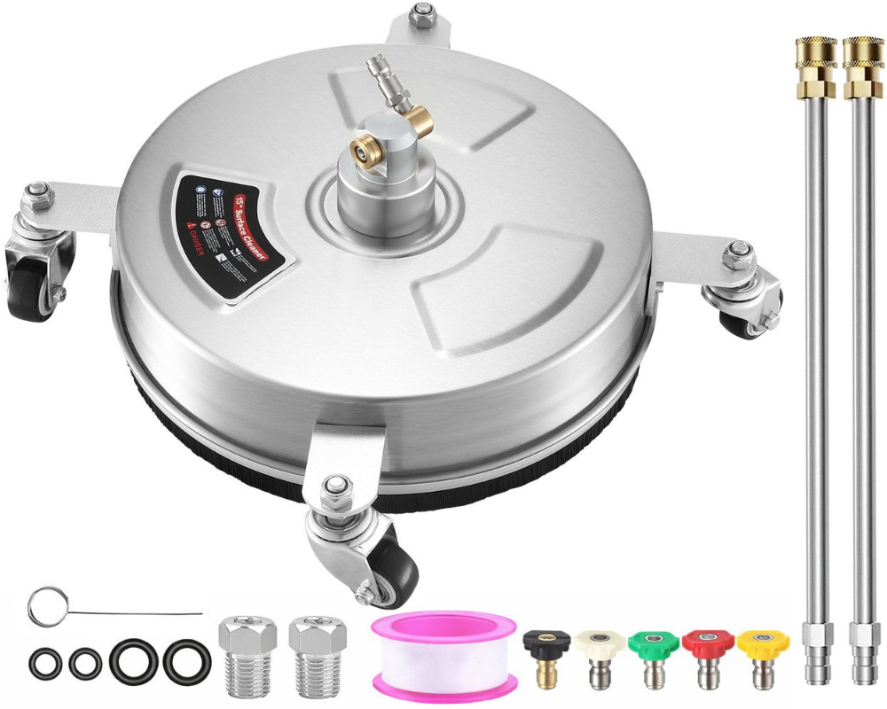 Revolutionize your cleaning routine with this 15'' Surface Cleaner, designed for high-efficiency pressure washing. This Surface Cleaner is built to handle demanding cleaning tasks on patios, driveways, decks, and other large areas. With durable construction and dual rotating jets, this Surface Cleaner delivers fast, consistent, and streak-free performance.