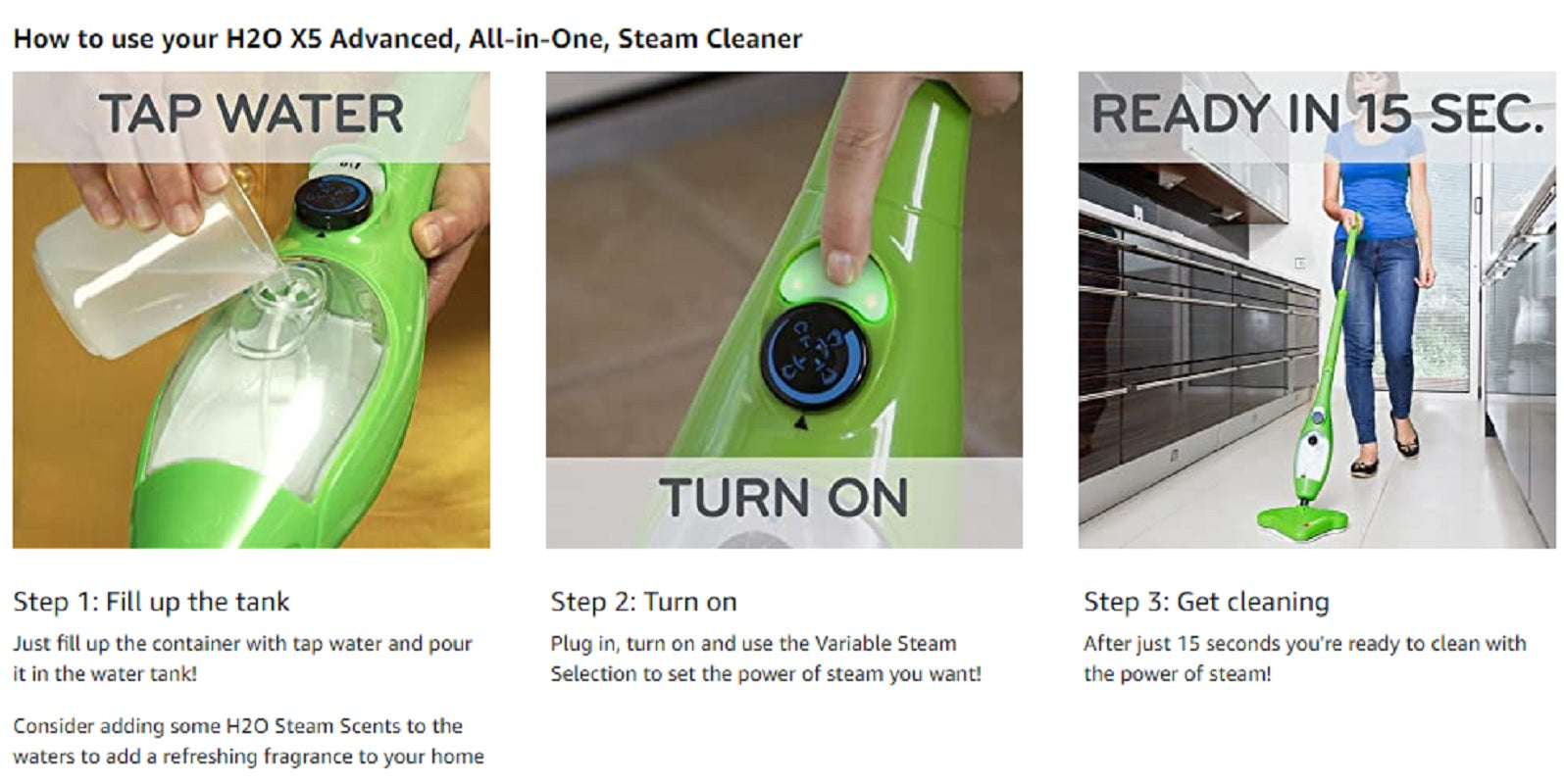 The H2O X5 Steam Mop is a versatile cleaning solution that effectively eliminates 99.9% of bacteria without the need for harsh cleaning chemicals. This product is available in a vibrant green color and comes in a standard size.