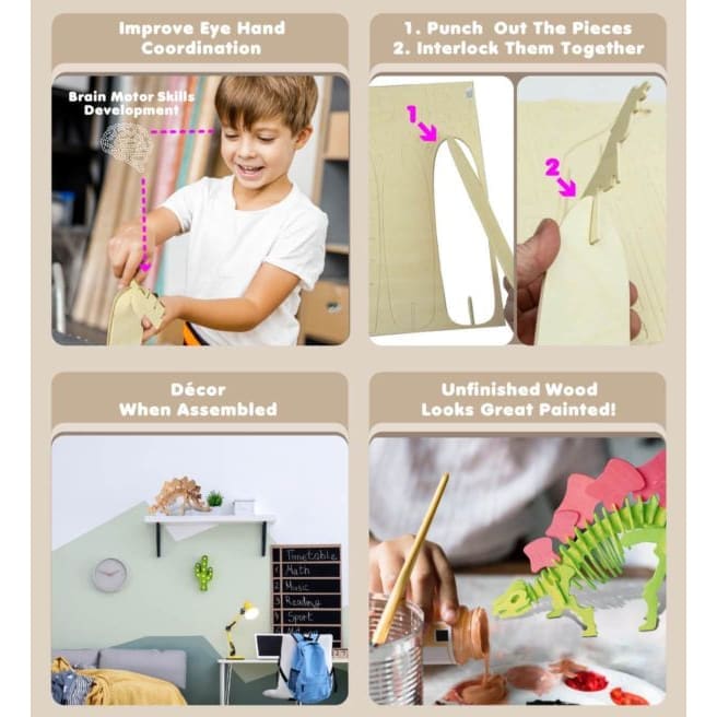 This 51 piece large Stegosaurus wood craft construction kit is a fun & educational DIY 3D puzzle to build & paint or keep in natural wood.