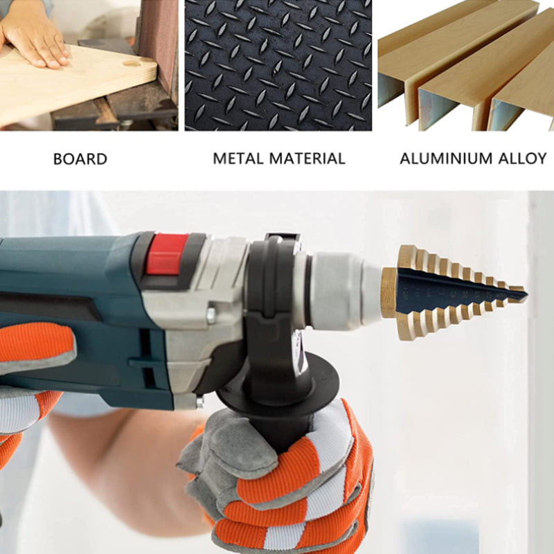 5 Multiple Hole Stepped up Bits, have many steps which contain multiple diameters, convenient to drill different hole size by using a step drill rather than many drills, ideal for DIY projects at home, garden, workshop etc.