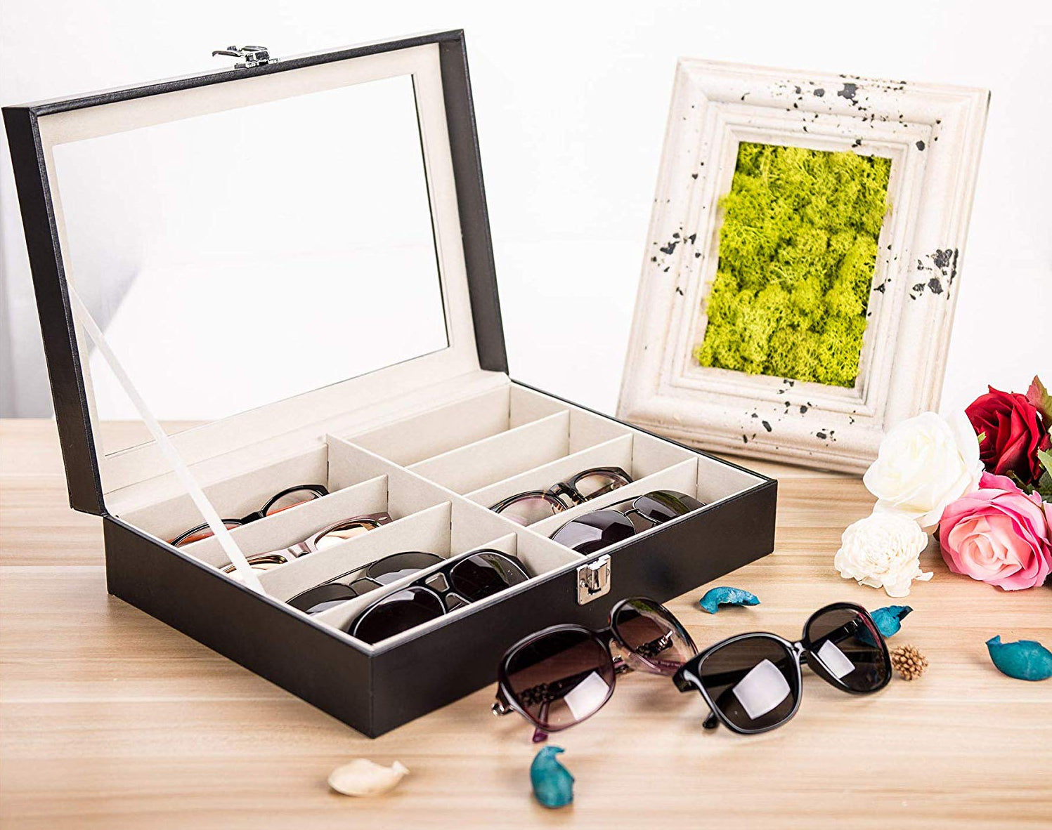 - Versatile Storage: With 8 compartments, this organizer is perfect for storing sunglasses, eyeglasses, and even turning into a jewelry and watch organizer with an optional divider.