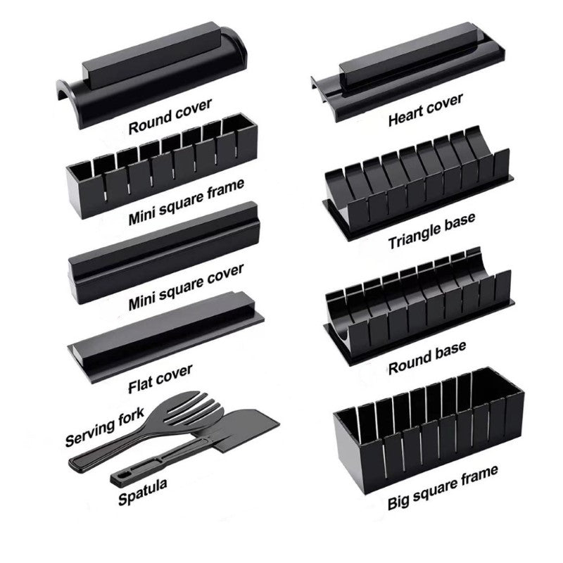 11pcs Black DIY Home Sushi Making Kit, 8 Sushi Rice Roll Mold Shapes, Kitchen Sushi Maker Set Sushi Tool, Plastic Sushi Rolling Makers, Fork, Spatula and Sashimi Knife