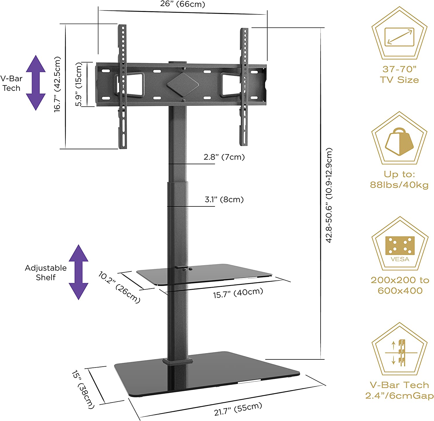 - Custom Viewing Comfort: This Universal TV Stand allows you to adjust the height to perfectly align your TV to eye level. Ideal Tv Stand for TVs between 32 to 70 inches.