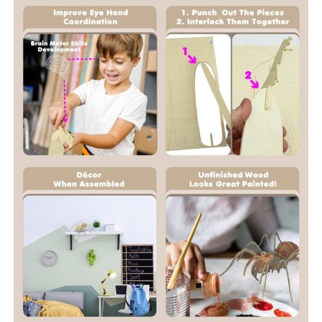 This 28 piece Tarantula wood craft construction kit is a fun & educational DIY 3D puzzle to build & paint or keep in natural wood.