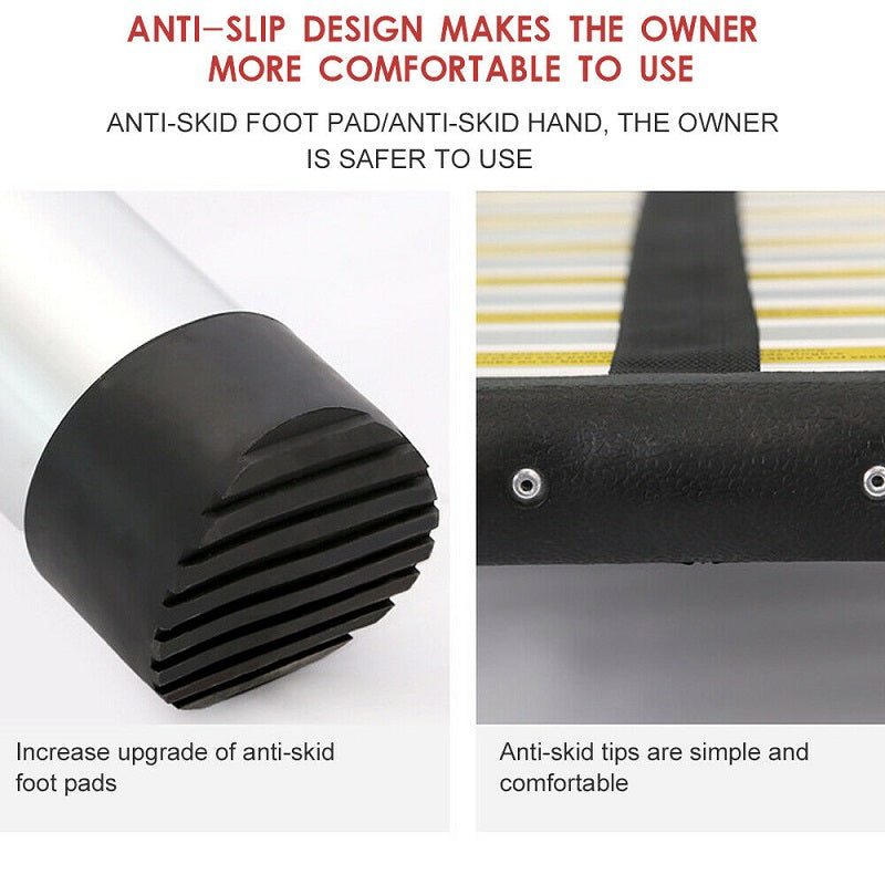 Featuring durable Aluminium design + industrial-grade height-locking latches + solid anti-slip rubber-tipped feet + Support Bar,