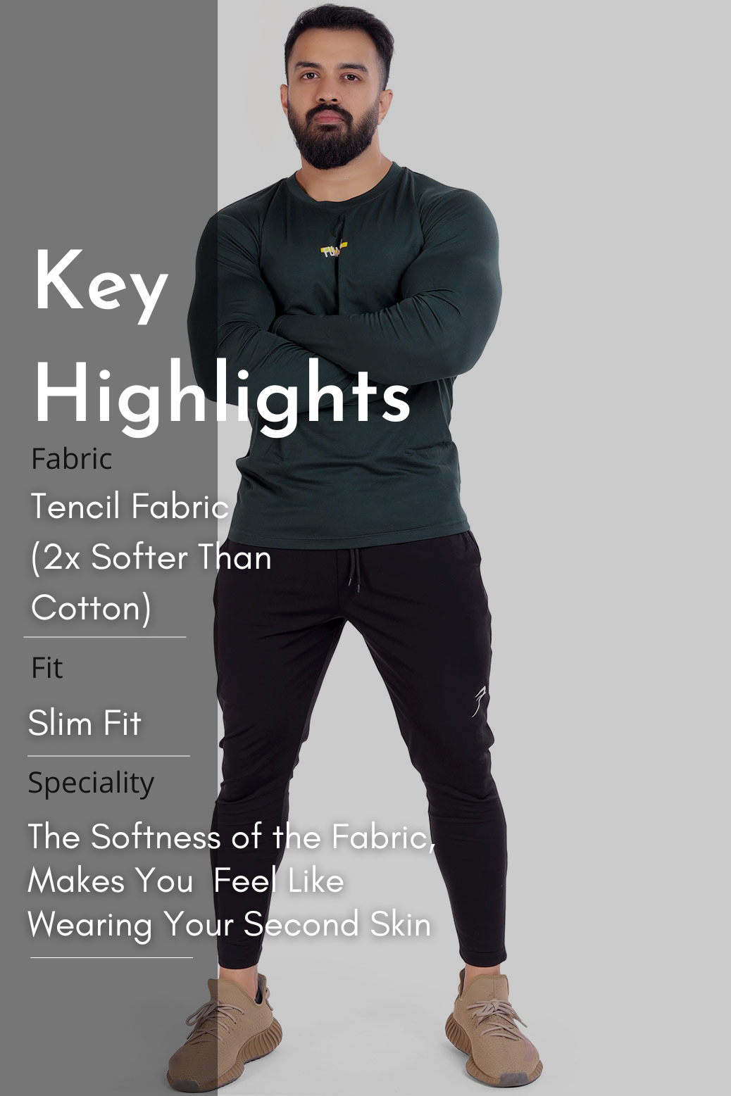 Embrace comfort and durability with the Tencel Full Sleeve T-shirt in Green, made from Tencel fabric that is 2x more durable than cotton. Designed with a slim fit, this t-shirt offers a sleek, form-fitting look that enhances your natural shape. The fabric is not only lightweight and cool to the touch but also features sweat-wicking technology to keep you dry during your busiest days. Whether you're hitting the gym, enjoying an outdoor activity, or going for a casual stroll, the fresh green color adds a stylish pop to your wardrobe.