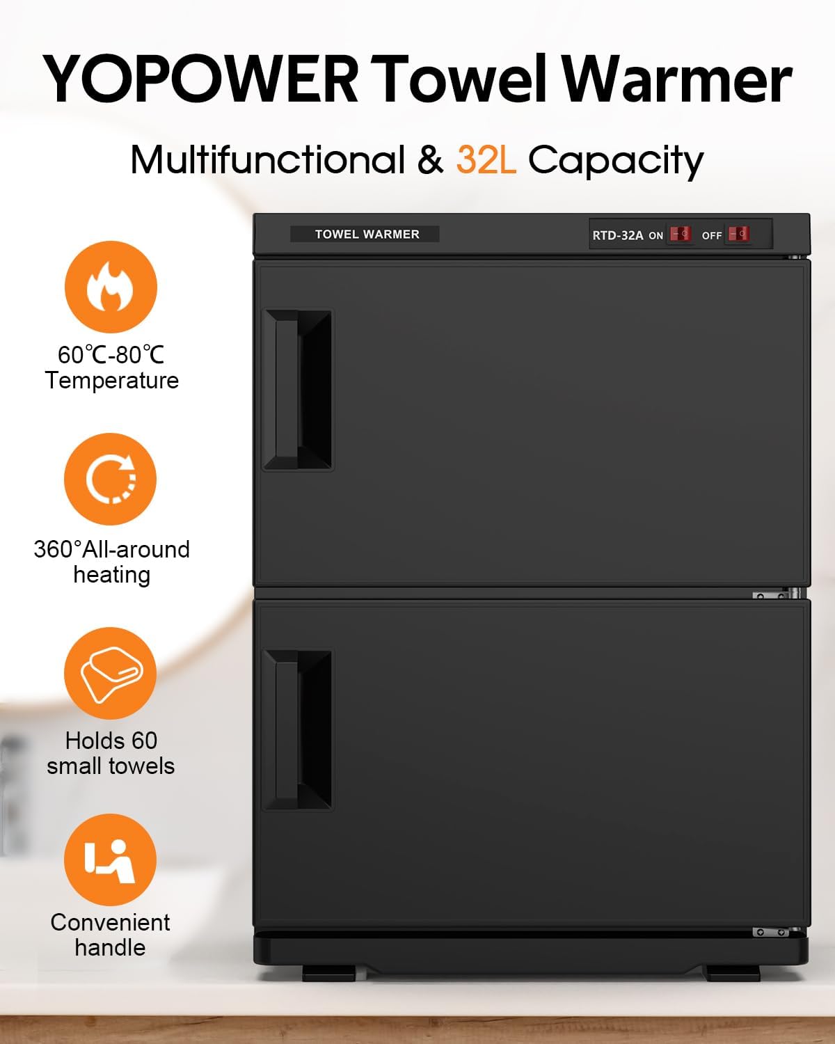 - Large 32L Capacity: Store up to 20 long square towels or 50 small towels in this spacious Towel Warmer cabinet.