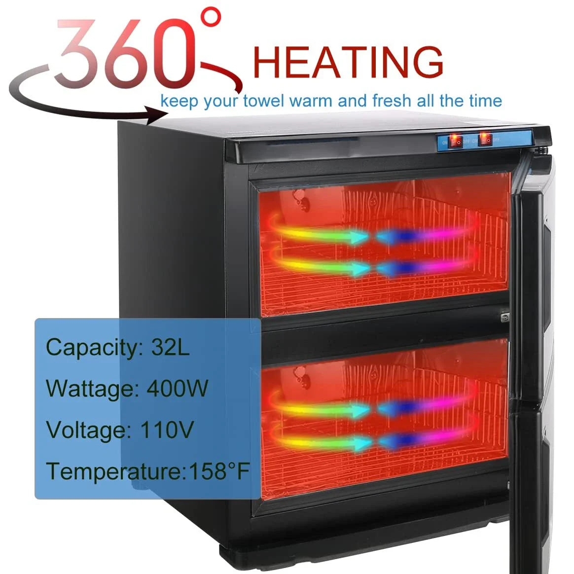 - Double-Door Design: Stylish and practical, this Towel Warmer is easy to load and unload, perfect for busy spa or salon environments.