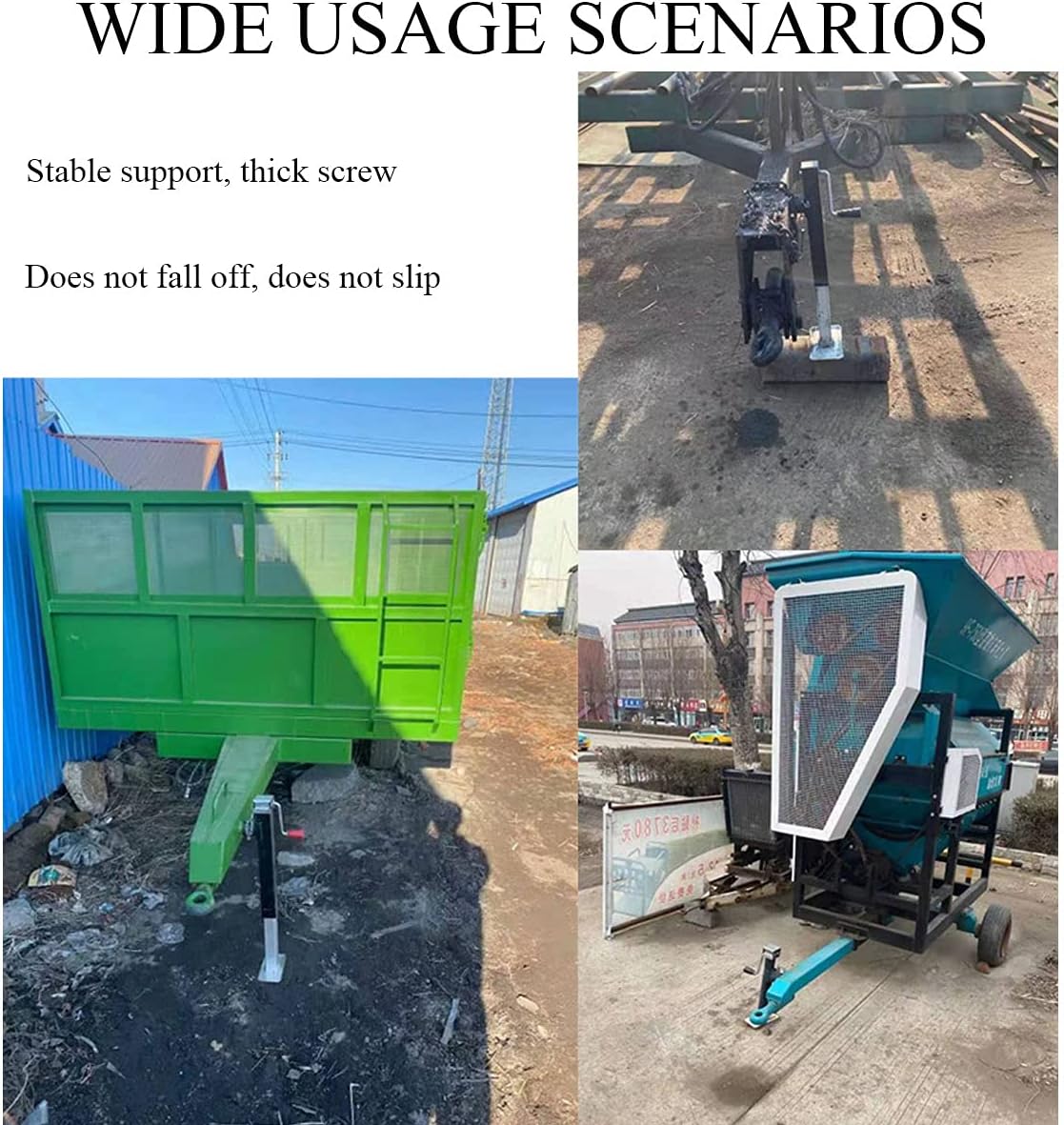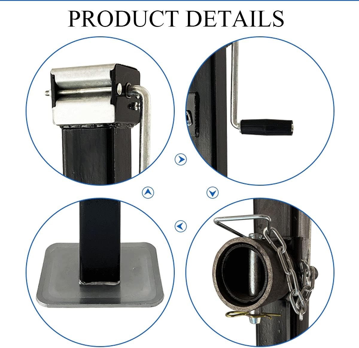 -ROTATION DESIGN:In order to ensure sufficient clearance when towing the trailer, this trailer jack is equipped with a rotatable mount, the plug can swing without dragging, and is equipped with a heavy-duty pull pin for firm locking.
