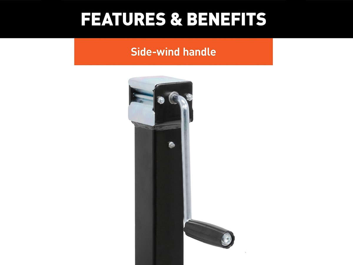 - Rust-resistant performance: This trailer jack features galvanized inner and outer tubes and a powder coat finish, which provide enhanced rust resistance and long-lasting durability. The heavy-duty carbon steel construction also ensures maximum strength and stiffness for your trailer.