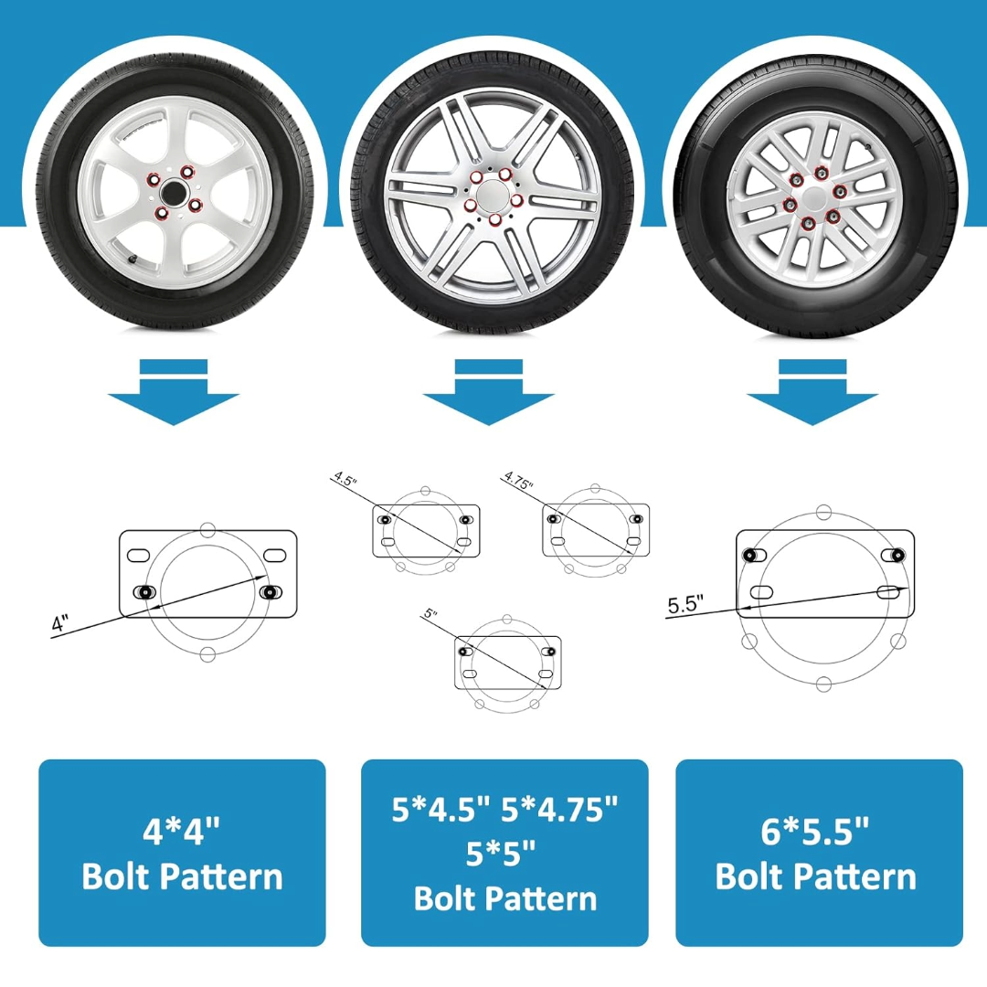 Universal Compatibility: This Tyre Carrier mount is designed to fit a variety of lug patterns, including 4, 5, and 6 lugs, with specific hole diameter measurements. This universal compatibility ensures that it can accommodate most boat trailers, RVs, and other similar vehicles.