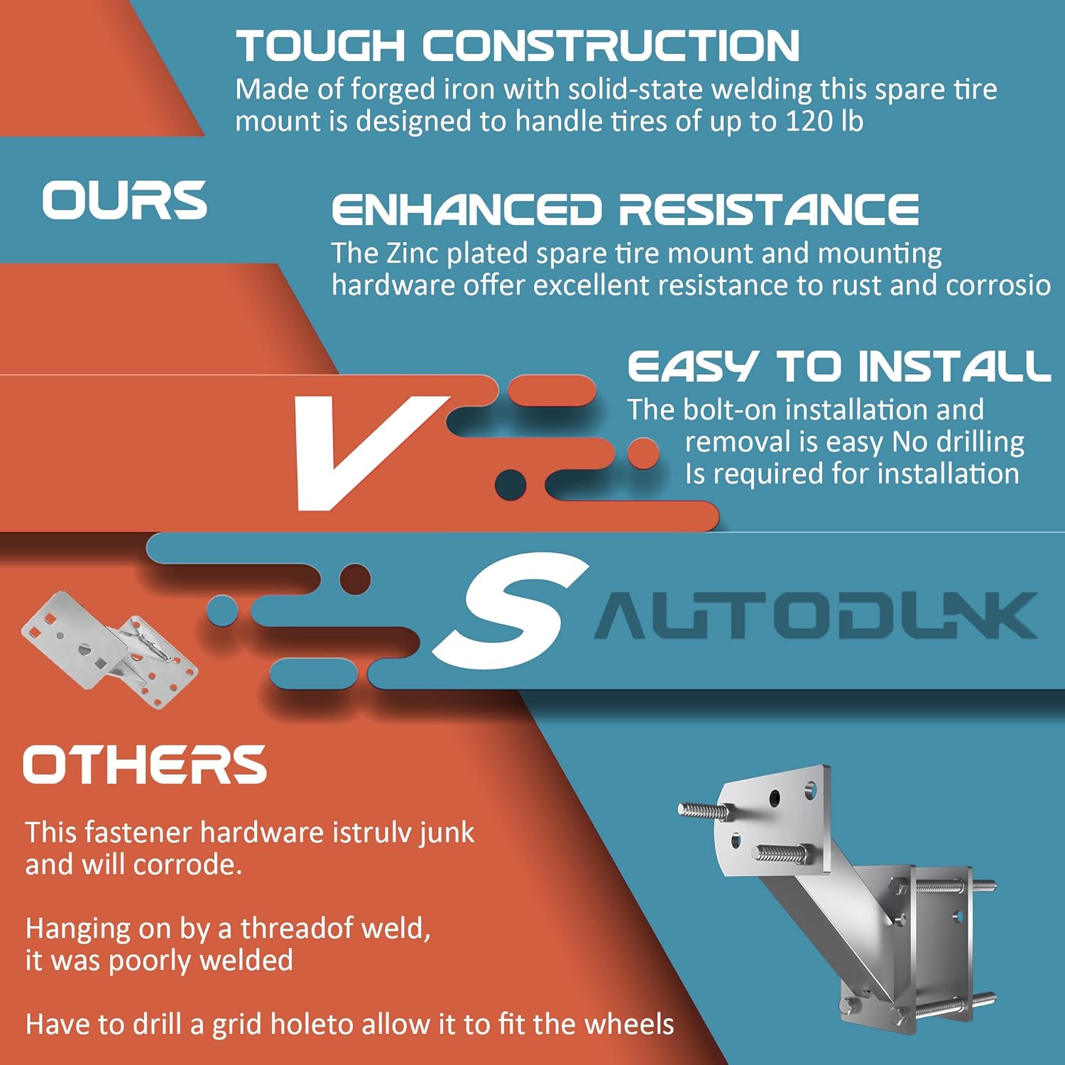 -Special lock: special design with lock to ensure the spare wheel is not stolen, shaking will not fall off and not lost in the road. With high reliability, the spare wheel holder is not easy to damage and can work well for you.