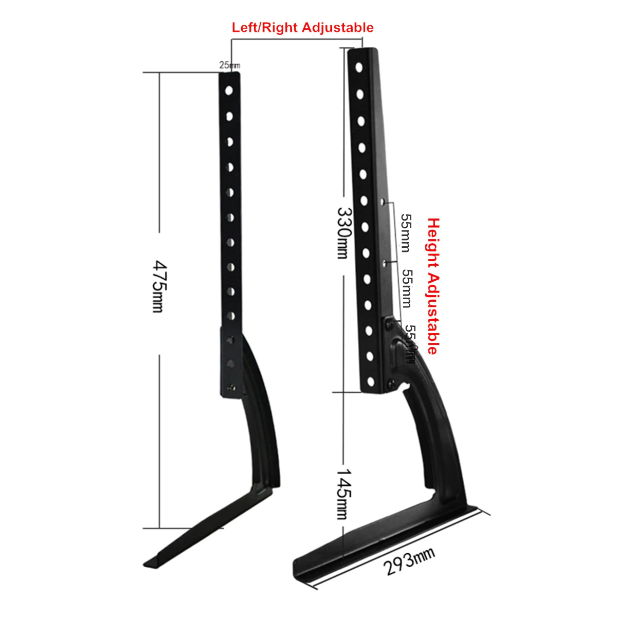 - Height Adjustment: 3 levels x 60mm (39"-65"), 3 levels x 55mm (26"-37")