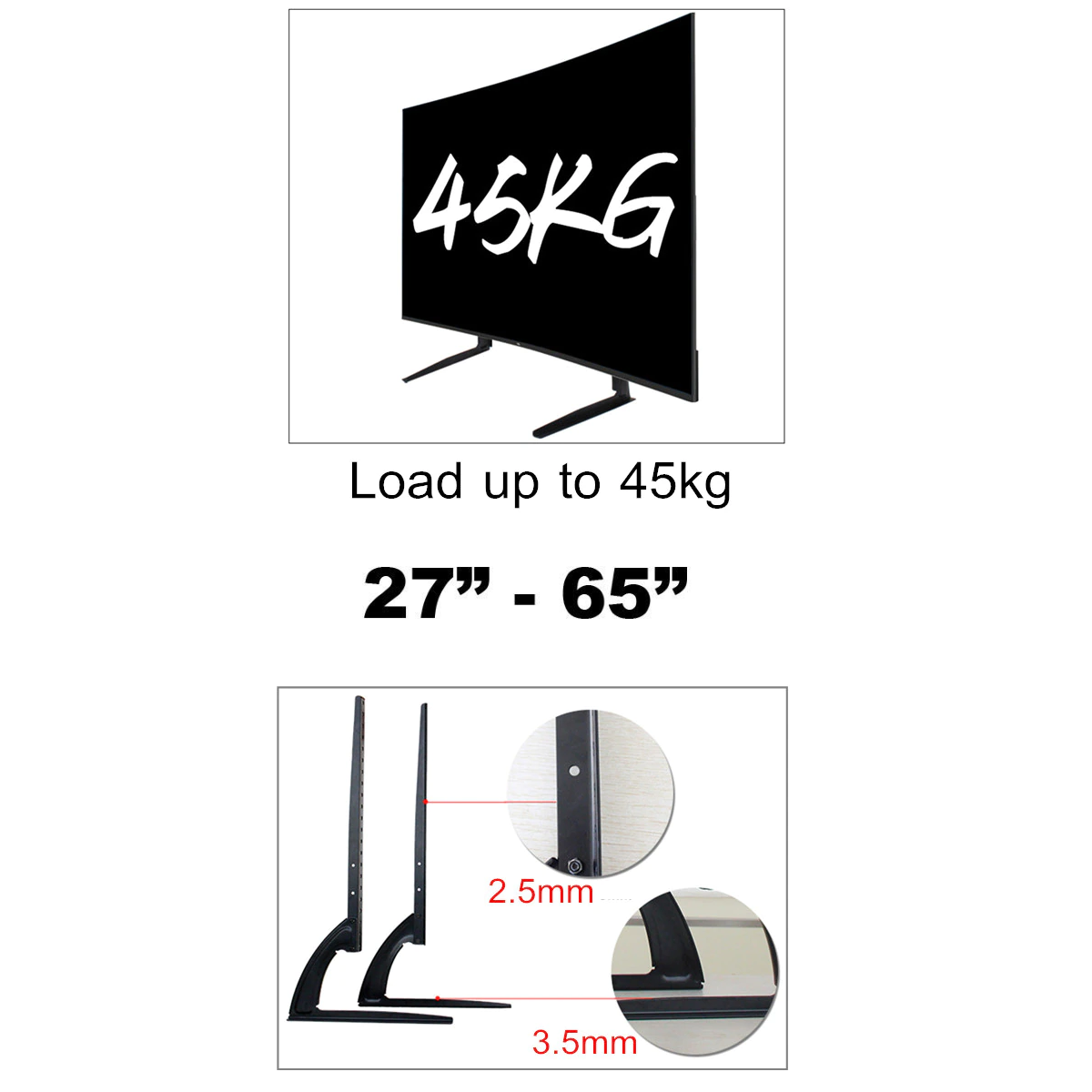- 39"-65" TVs: 45kg, VESA Compatibility: 75x75mm up to 800x400mm