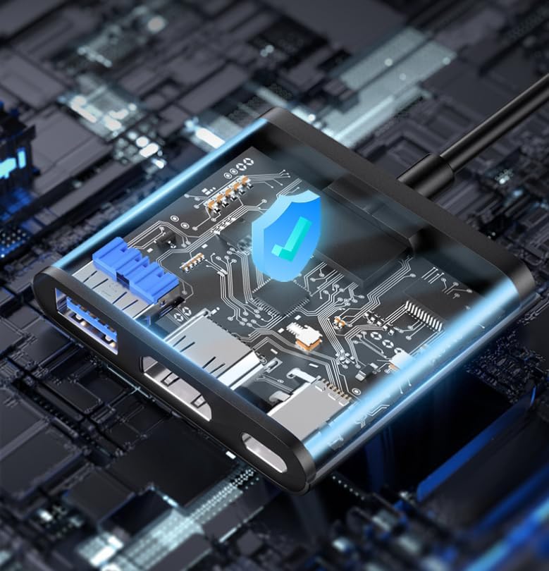 - Triple Shielded Cable: The USB-C to HDMI 3-in-1 Multiport Adapter features a reinforced triple-shielded cable for stable signal transmission.