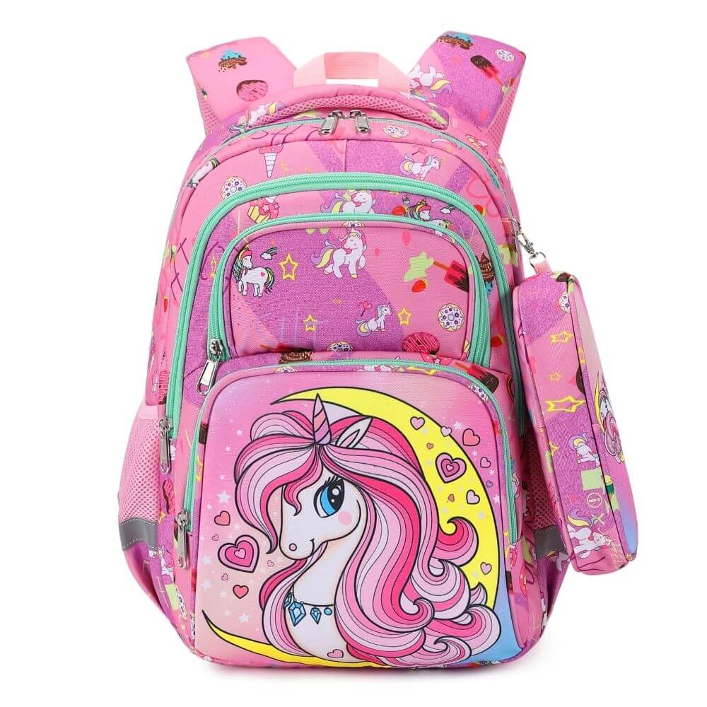 This pink unicorn school bag set is one of the most stylish & cool school bags for girls in 2022. The set includes one piece of large capacity school backpack, one lunch box bag, and one pencil case.