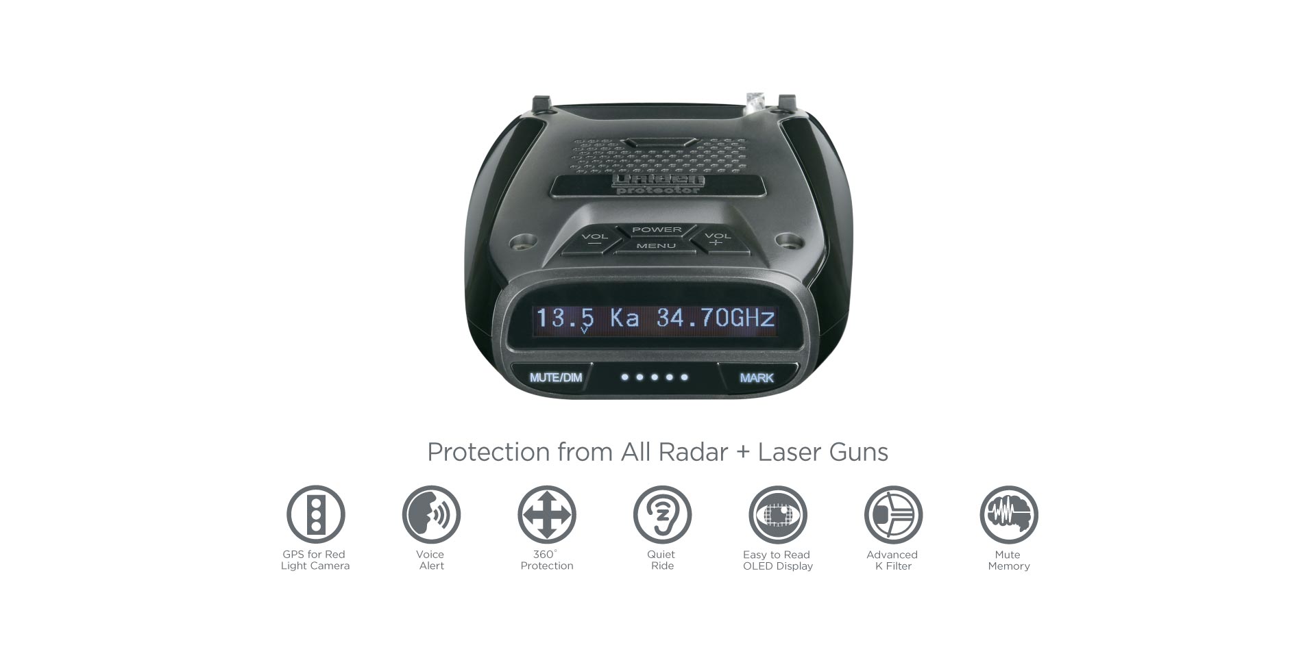 Long Range Laser Radar Detector with GPS & Red Light Alert camera alert, 360° Laser/L2/L3 Radar Detector with memory, voice alert, electronic compass, and cig-lead with mute key and USB