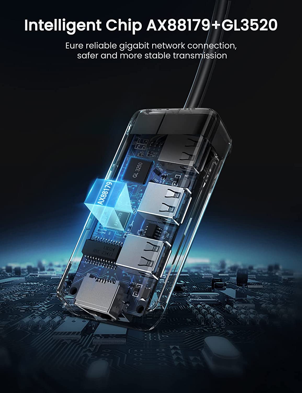 USB 3.0 Hub 3 Port with Gigabit Ethernet Network Adapter