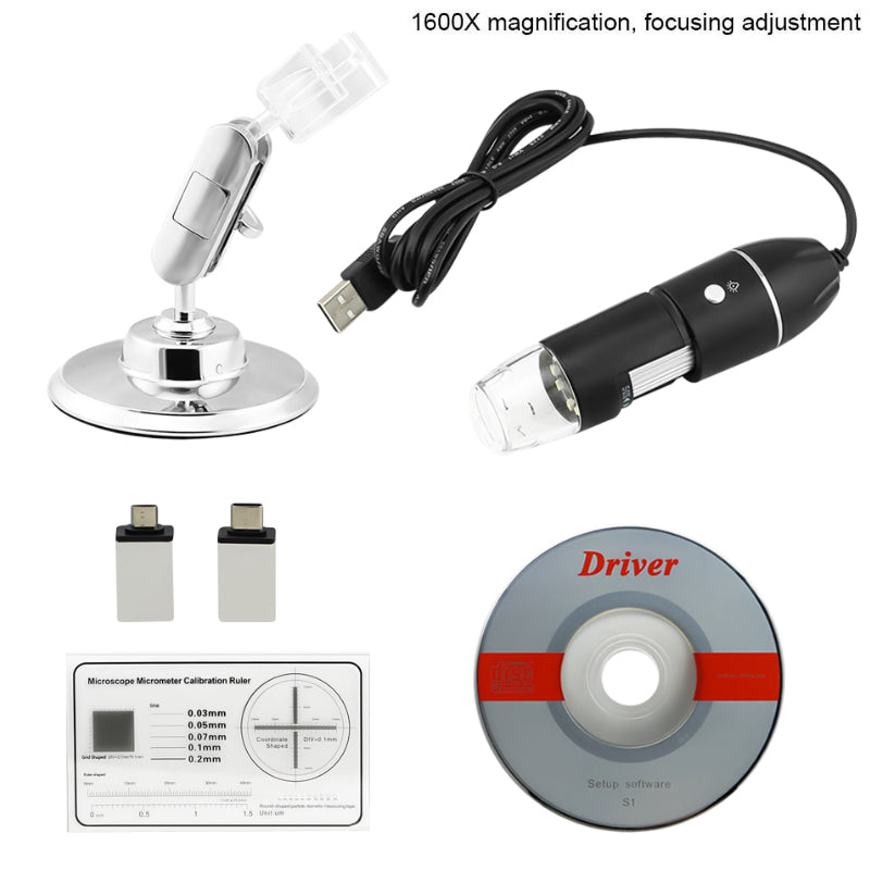 -High Resolution: The product has bracket for easy observation, detection, focus 1600X, high resolution, support shooting and video recording, measurement, small and portable, with light source.Video resolution: 640*480, support Win10 Win8 Win7 XP OSX -MAC , -Android phone.