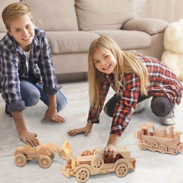 The V8 Vehicle 3D Wooden Puzzle Kit (45 pieces) offers a hands-on and educational DIY building experience for kids and adults alike.