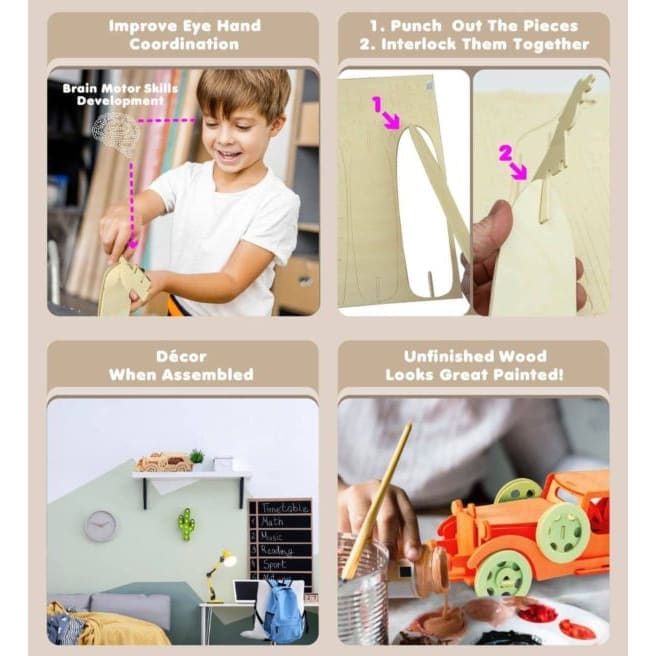 The interlocking design requires no glue, and you can keep the natural wooden finish or paint it for a custom look. It’s a great way to combine creativity, learning, and fun.