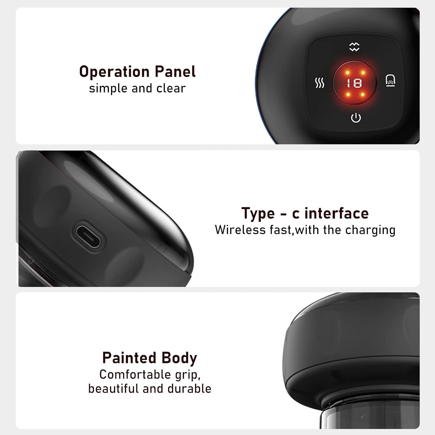 -QUICK CLEANING: This electric cupping device is washable and easy to clean, you don't have to worry about the cupping device getting dirty after use, this is a very user-friendly smart cupping device.