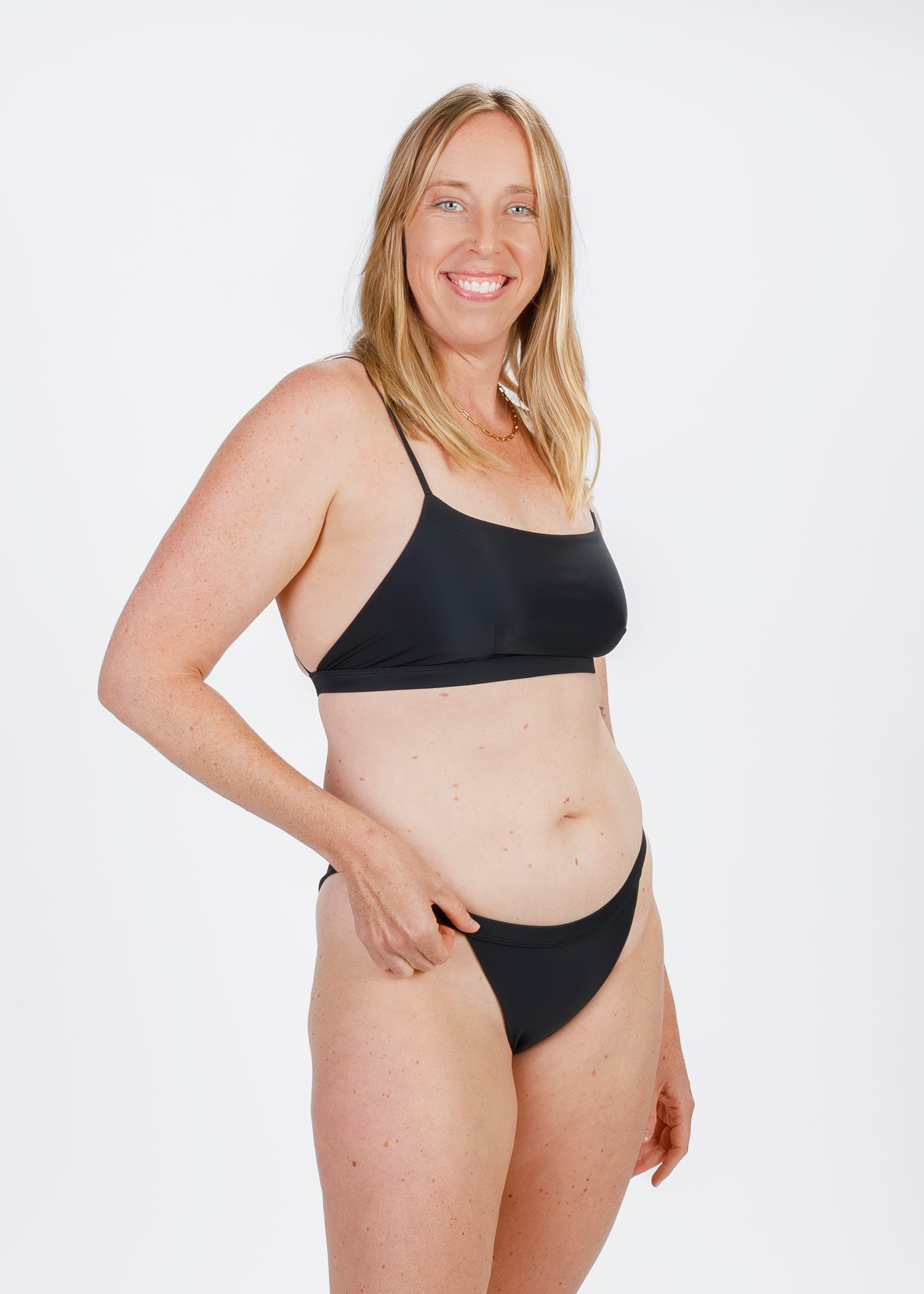 The Valentina panties are a hybrid of our favourite high-waist cuts and the classic tie-side bikini bottom. We’ve eliminated the tie, so you can rest assured these bottoms won’t leave you for the ocean’s depths!