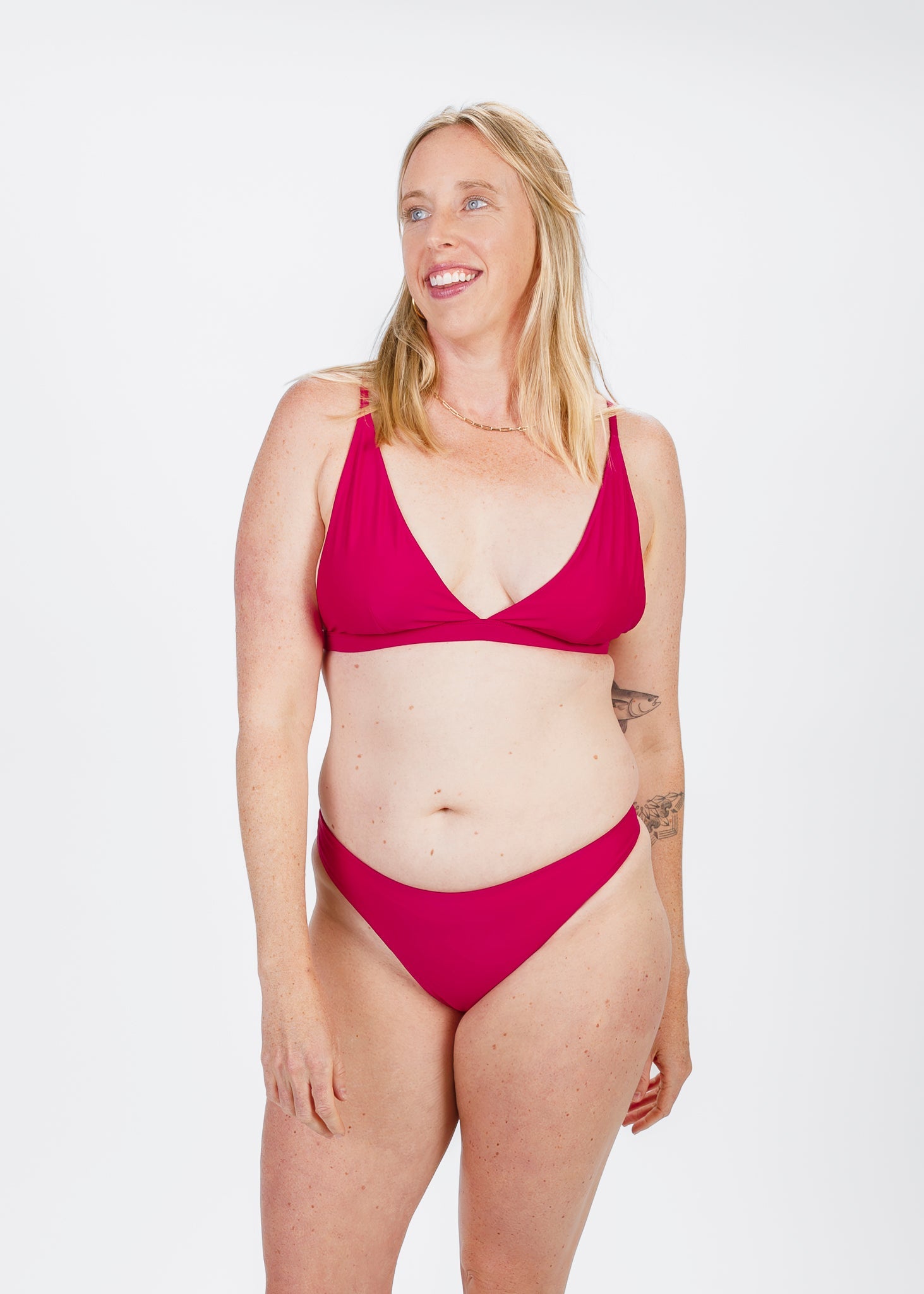 While it'll flatter any bust, the high triangle cut is especially ideal for cup sizes A to D.