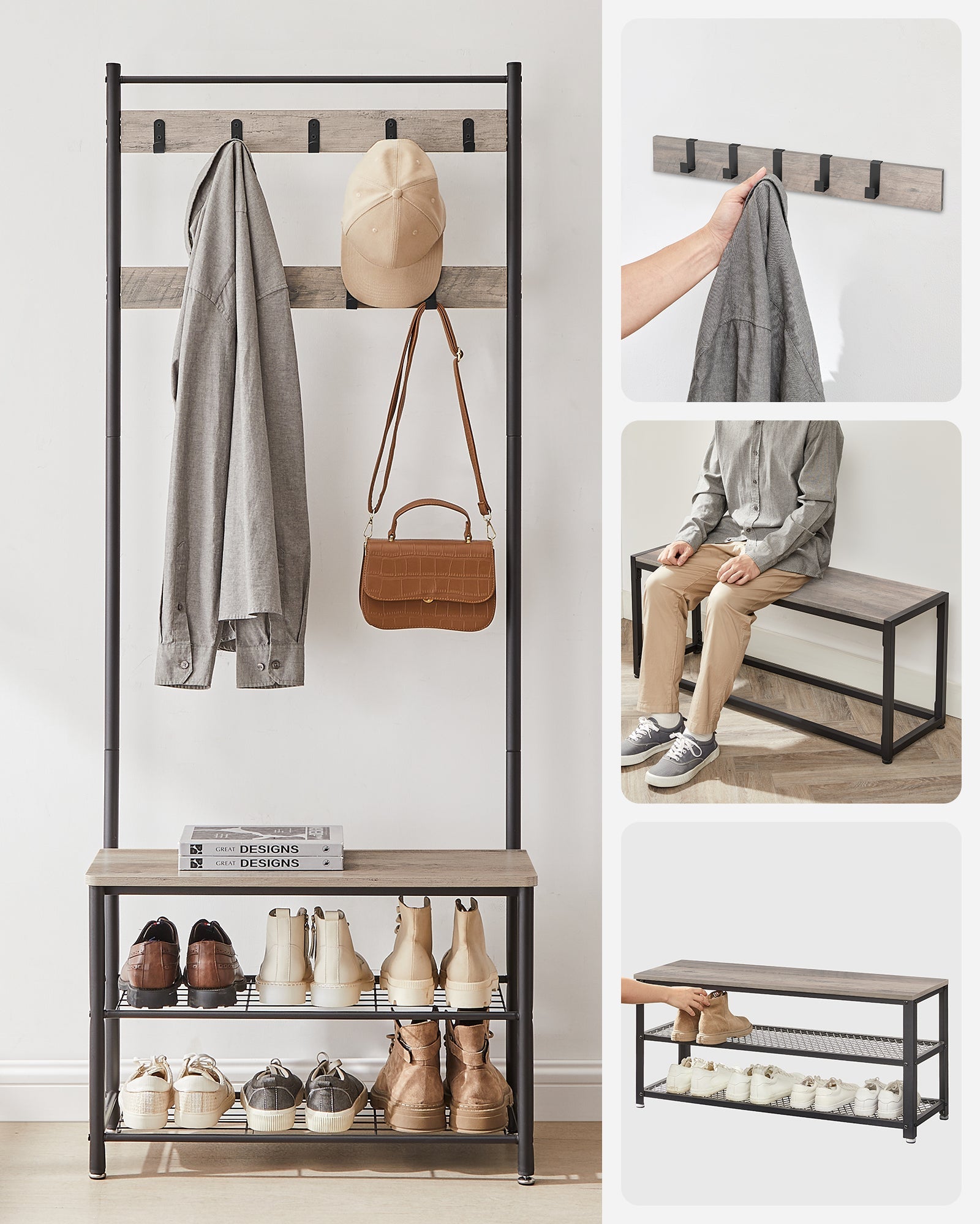 - Product: VASAGLE Industrial Hall Tree Coat Rack and Shoe Rack Bench