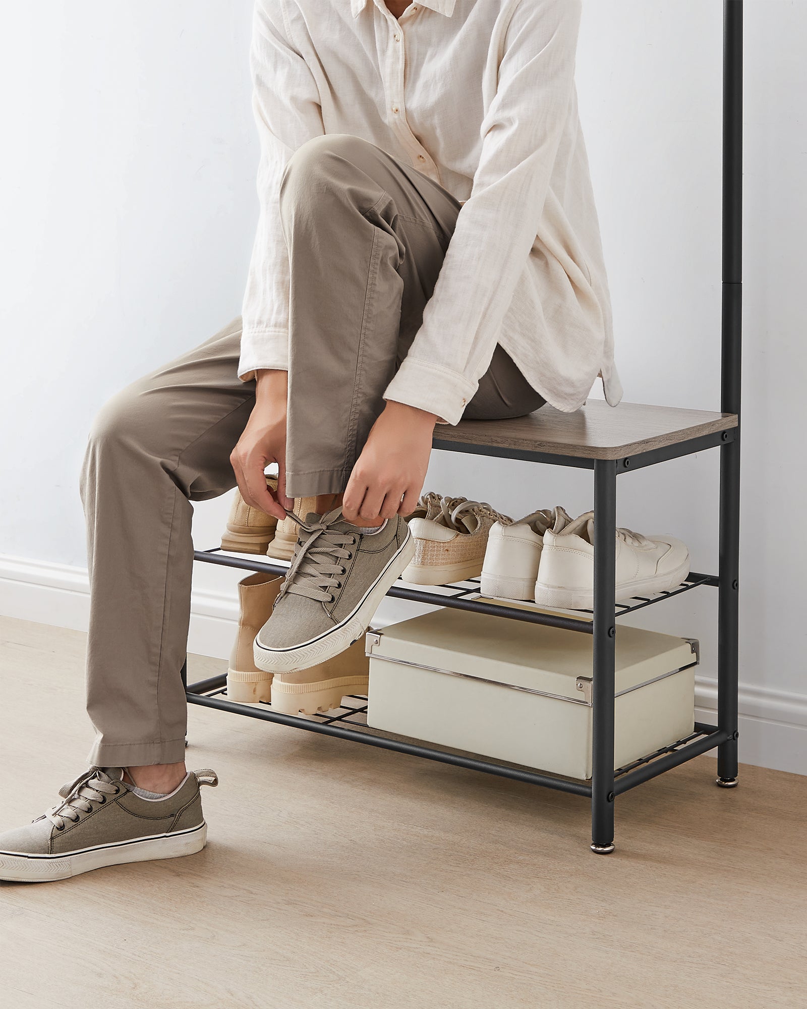 - Large Shoe Storage: Three-tier design provides space for up to 10 pairs of shoes in the Coat Rack and Shoe Rack Bench.