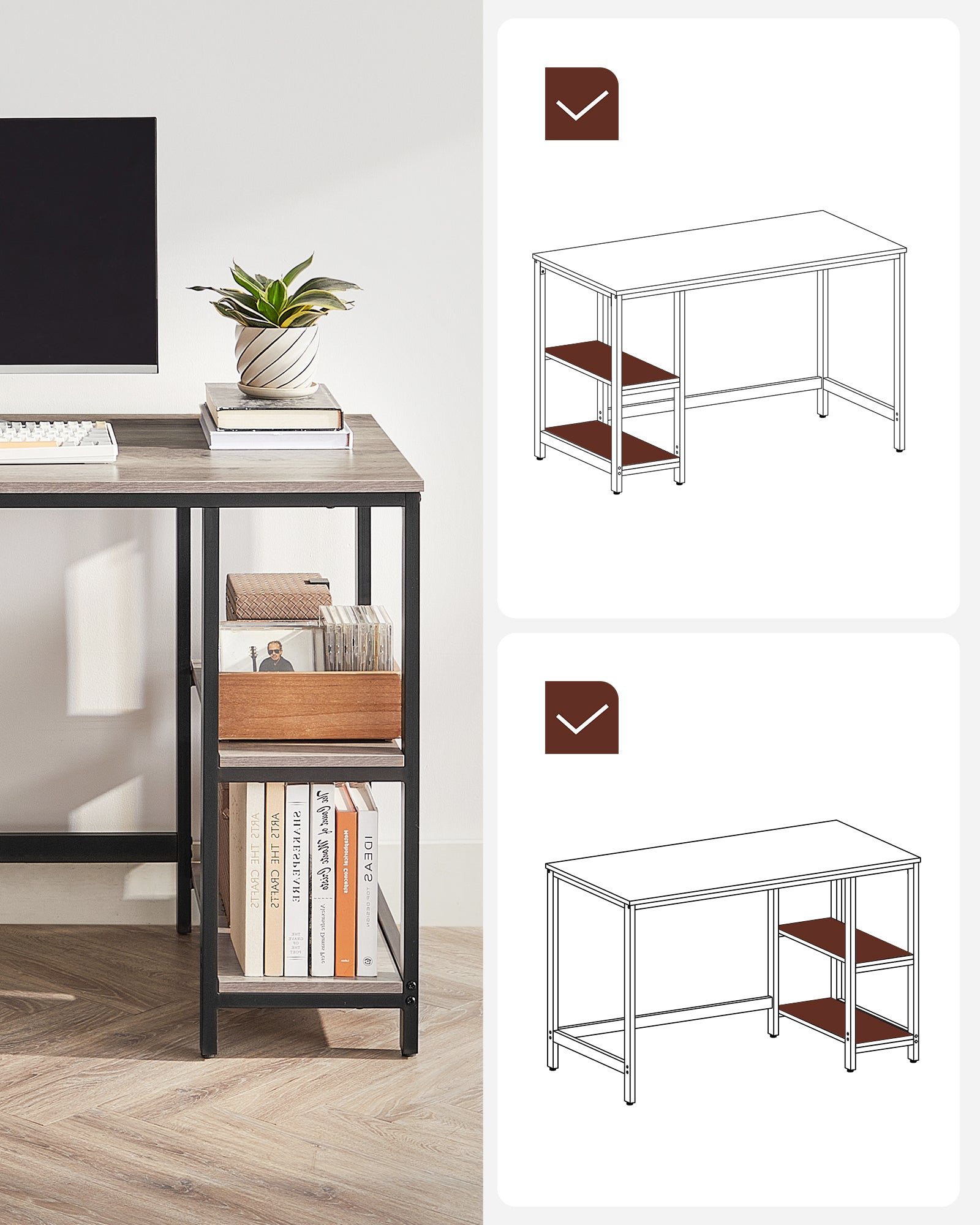 VASAGLE Industrial Office Work Desk – Greige & Black Computer Desk with 2 Shelves