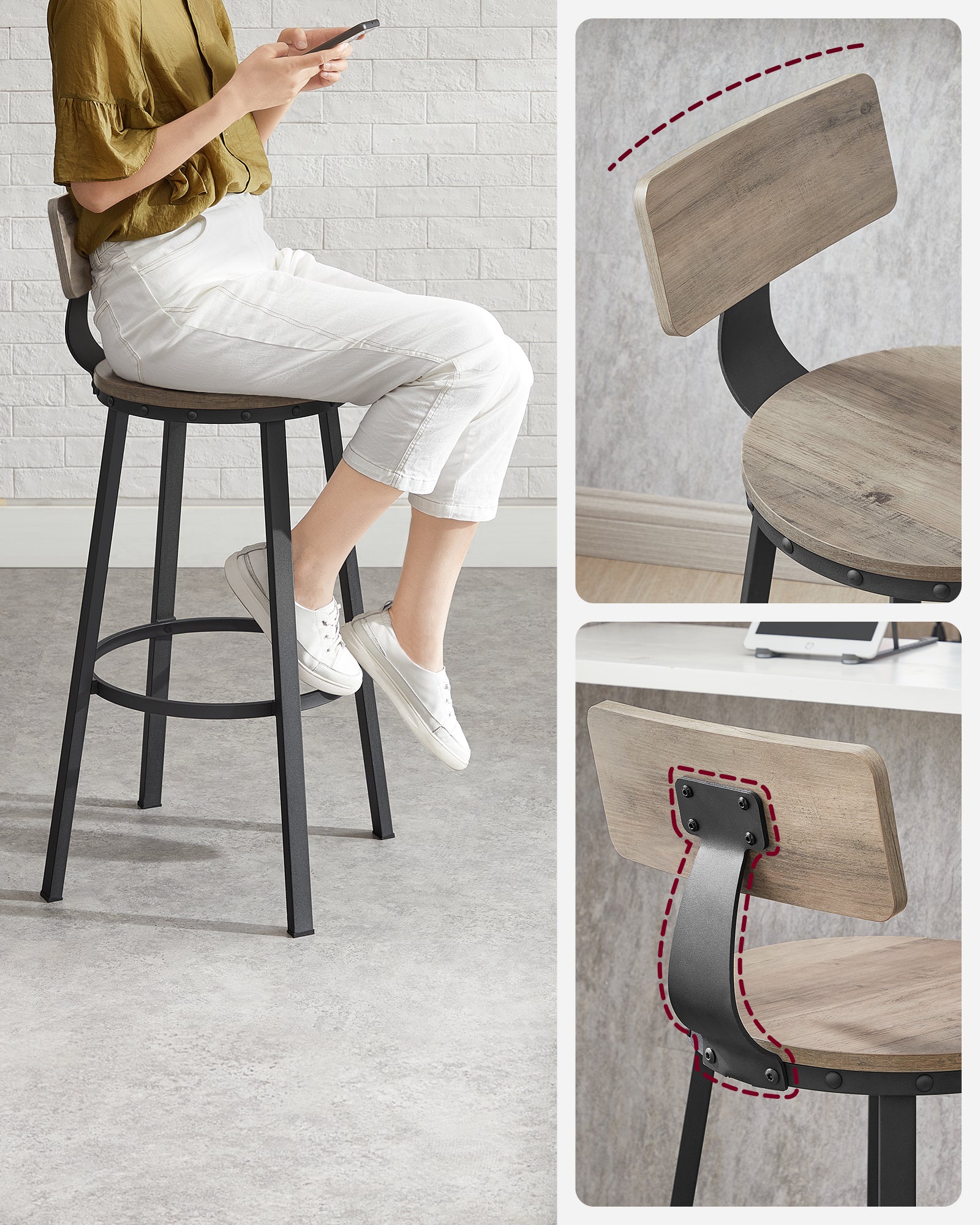 VASAGLE Industrial Bar Stools – Set of 2 | Greige Kitchen & Home Bar Seating