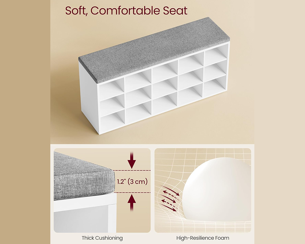 - Spacious Storage: The Shoe Storage Bench offers 15 compartments, ideal for organizing 15 pairs of shoes and reducing clutter.