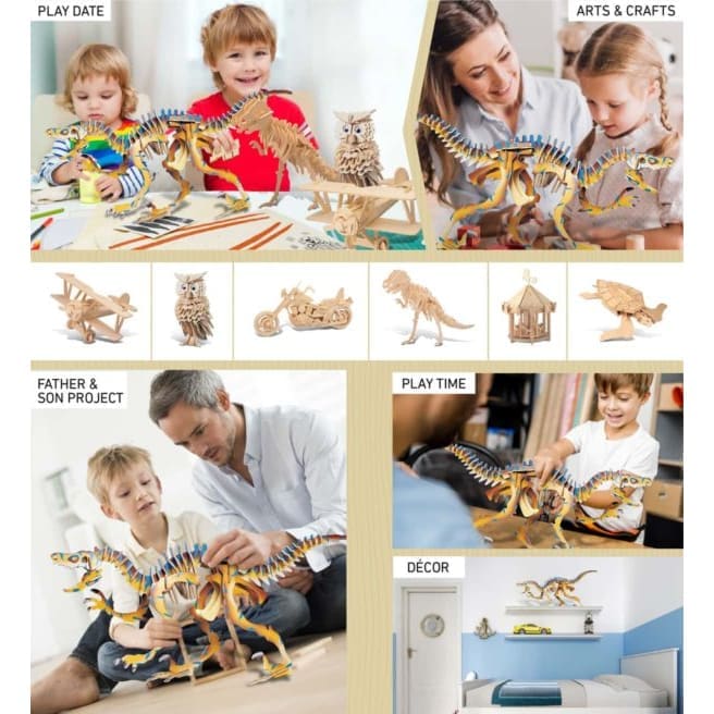This 47 piece Velociraptor pre-coloured wood craft construction kit is a fun & educational DIY 3D puzzle to build & paint or keep in natural wood.
