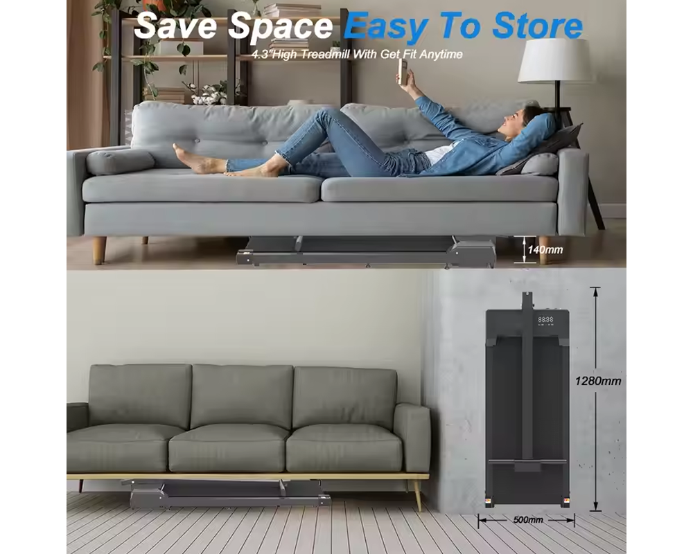 - Foldable & Space-Saving Design: With a compact frame and built-in transport wheels, this Portable Treadmill for Home easily fits under beds or sofas—perfect for apartments or small home gyms.