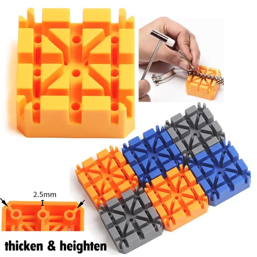 Designed to hold the watch firmly in place, it prevents scratches and damage while replacing links or pins—making it ideal for both professionals and DIY watch enthusiasts.