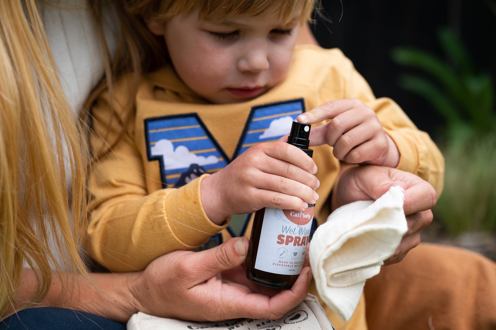 Use as a low-waste, no-tox alternative to disposable Wet Wipes for your sustainable parenting journey. The Wet Wipe Spray is calming for your baby's skin, contains only natural ingredients, and will last months of everyday use. Perfect for use at home or on the go, and they work really well with the incredibly soft Reusable Wet Wipes.
