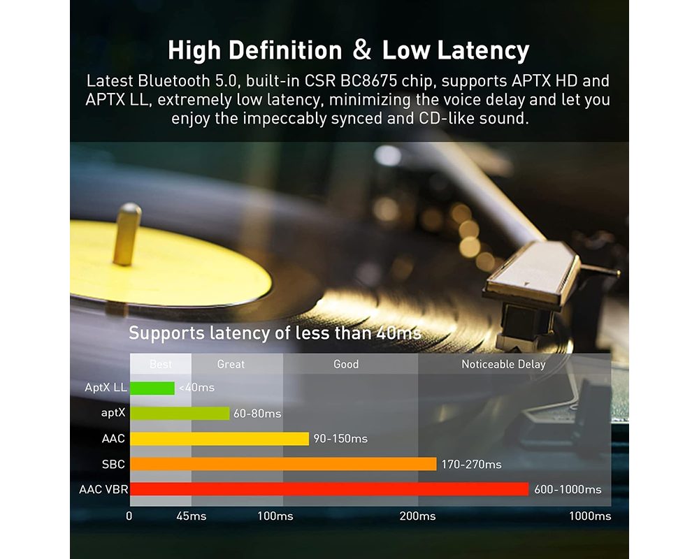 - High-Definition Sound: Experience rich APTX HD audio with the Bluetooth Transmitter Receiver 5.0 in TX and RX modes.