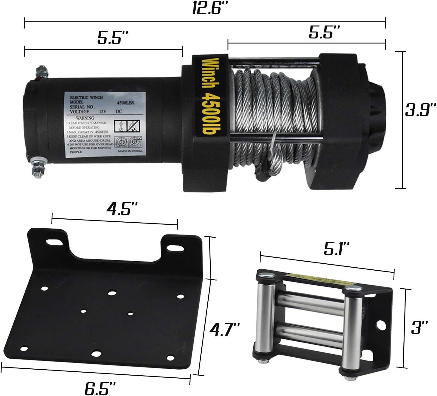 - 1 x 4500lbs 12V Winch