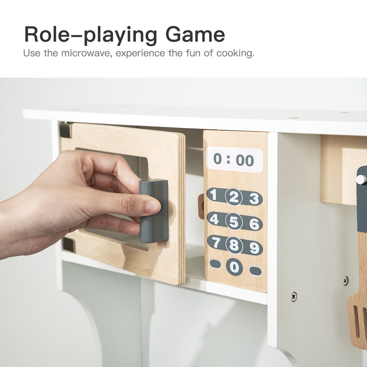 Fun & education: the design includes sinks, microwave ovens, fun stoves, lockers, etc., which simulate real scenes and stimulate children's interest.